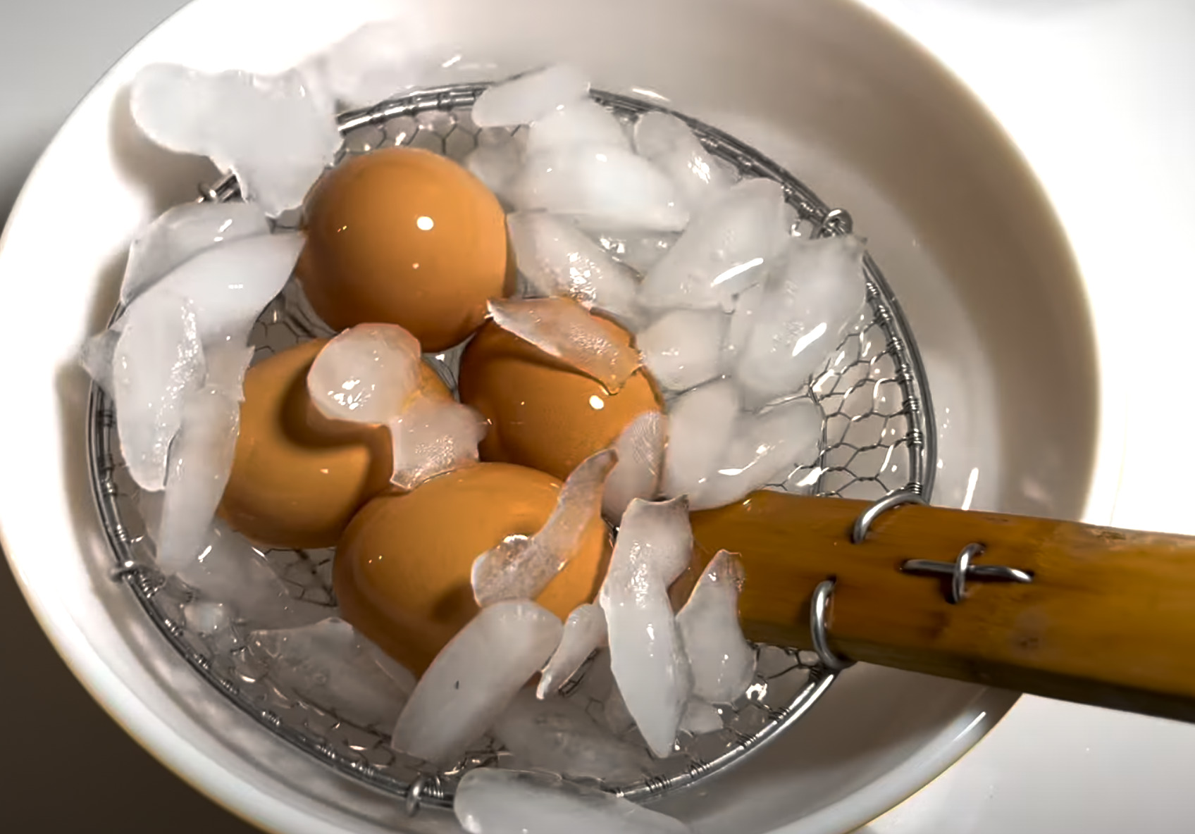 Once the eggs finish transfer them to the ice bath and allow them to come to room temperature.
