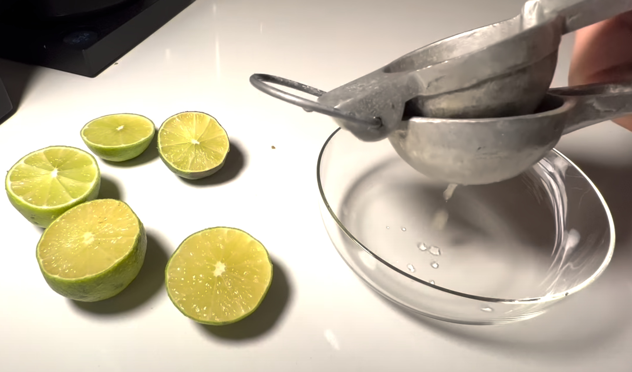 Pause the processor and juice limes (or lemons), then add whichever juice you prefer along with rice vinegar.